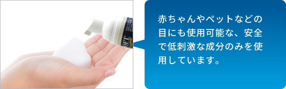 - マイボーム腺の皮脂やタンパク質汚れを分解し、通常の洗眼では落ちにくい皮脂汚れをこすらずキレイに洗いきる洗浄成分を実現しました。針などでつぶさないと取れないくらい頑固な皮脂も定期的な使用で柔らかくし、洗うことが可能になりました。
